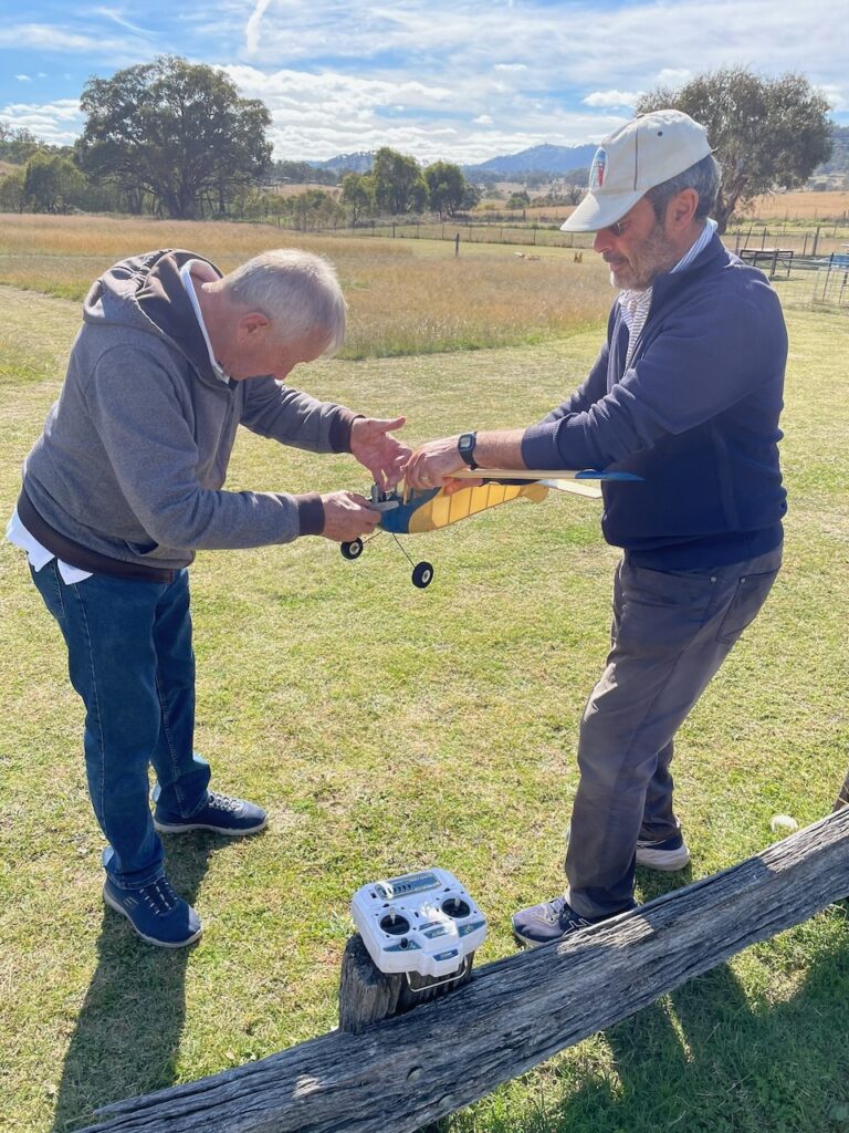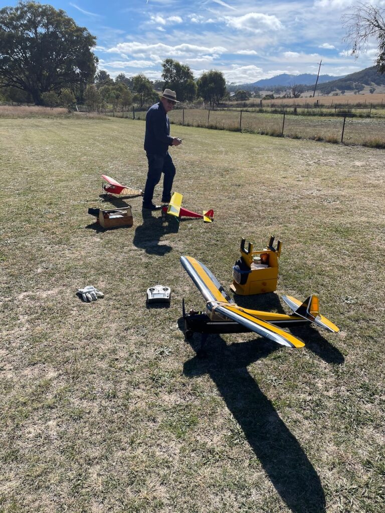 This is not actually a flight report, its something different … there was a Tomboy, or maybe an old timers, flying day at Tharwa to take advantage of some nice autumn weather. Everyone seemed to enjoy themselves including Allan who had one of those days when several of his models decided to stay ground bound for various reasons (ic engine decided it wouldn’t produce any power, servos died etc)