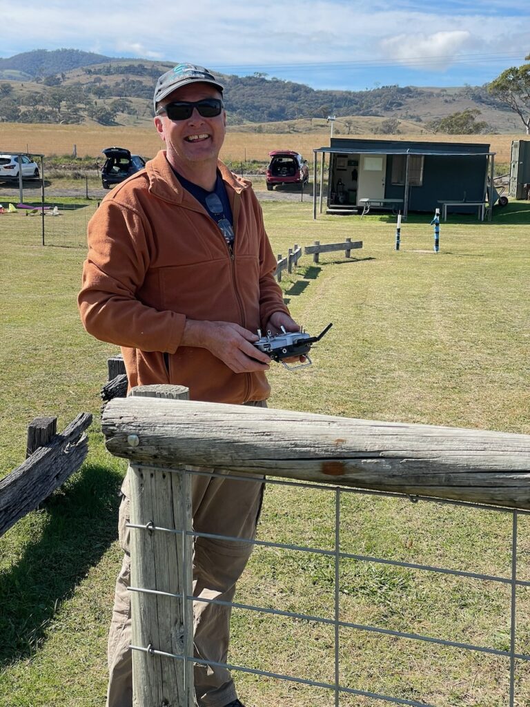 The big, dark clouds were coming in and Allan advised to get up into them higher than I was game to: although the model was reasonably visible it would be getting more difficult to keep orientation had I reached higher – or that was my excuse at least.