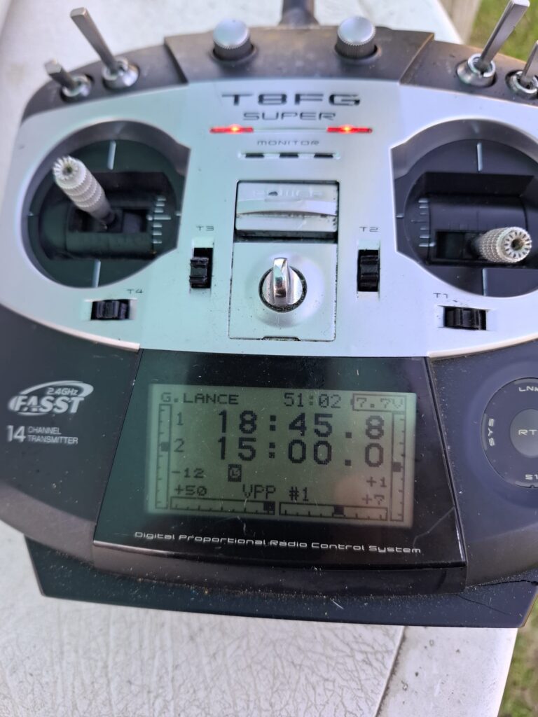 Just that update on the Tomboy results this morning: I think Ray was semi-serious when he asked that his 3 1/2 seconds time was noted on the timesheets. Hopefully he is philosophical about it and no more damage than a broken prop. Do we need to reiterate the sense in doing a control surface check for accurate direction pre-flight, I wonder? I managed a 20 : 20, still 14 seconds shy of Greg’s best time so far, but my PB by a long way. I experimented with a smaller high kv (1,800) motor and smaller 7 x 5 inch prop as opposed to the 10 x 4.7 slow flight (ie wide and draggy) prop I’d been using up to now. A few nice patches of lift didn’t hurt either. I think it shows there is value in experimentation and fine-tuning – which sometimes has benefits. Not always, of course – and there are many variables, such as lift availability.